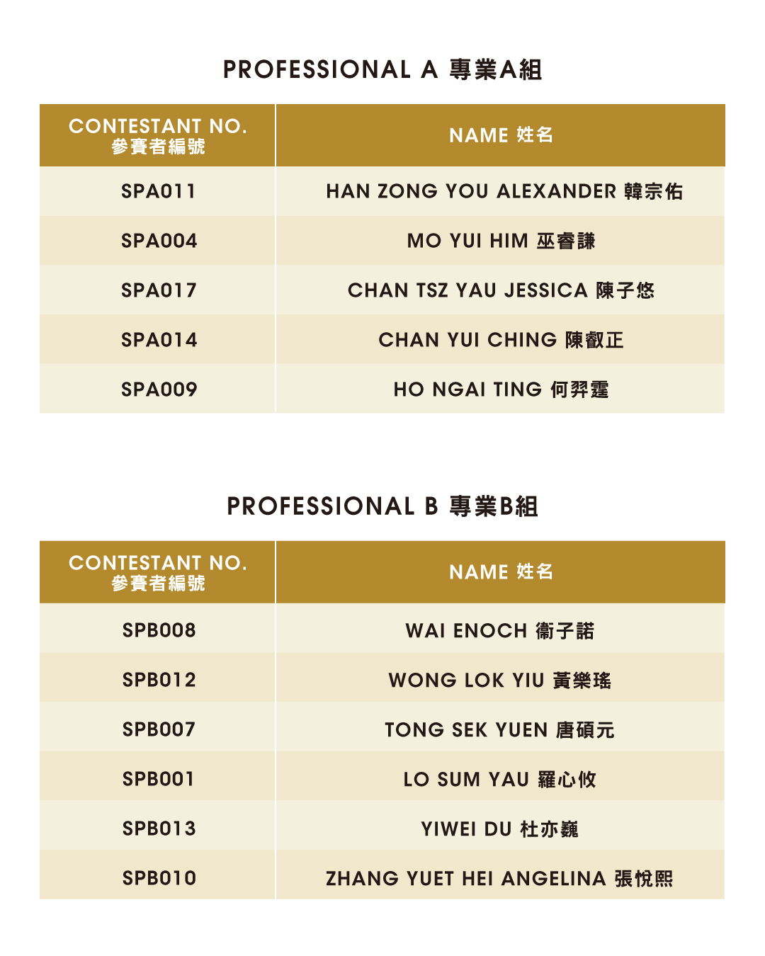 *此組別參賽者將根據年齡較大的選手確認到相應之組別。