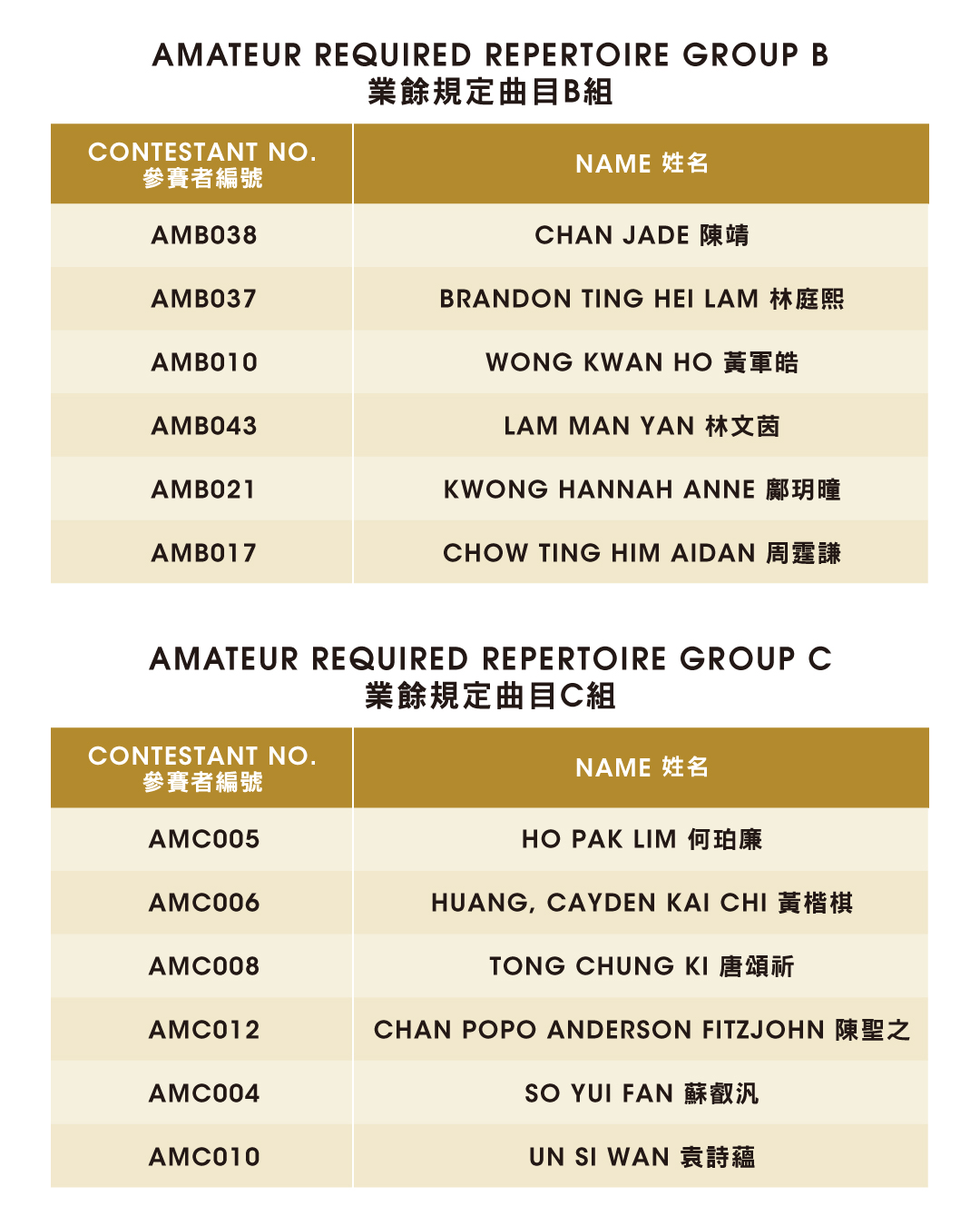 業餘規定曲目組 | |